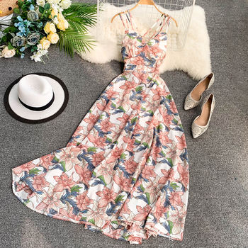 Fitaylor Women Floral Print Long V-neck Backless Bohemian Maxi Dress