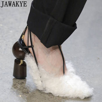 Autumn Runway style Pumps for ladies sheep hair Wrap toe lace up Women Shoes pointed toe strange high Heels shoes women