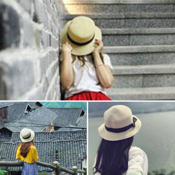 New Straw Sunhat Women Summer Beach Wide Brim Bow Sunscreen Outdoor Travel Hat Cap