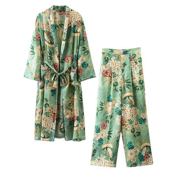 Set Female 2018 Summer New Japanese Temperament Fashion Long Kimono + High Waist Wide Leg Pants Elegant Thin Set set set