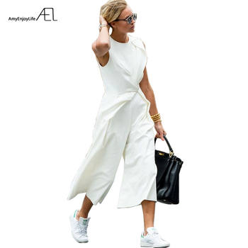 AEL White Ankle-Length Pants Empire Waist Asymmetrical Vest Conjoined Pants 2017 Casual Fashion Women Clothing Elegant Slim