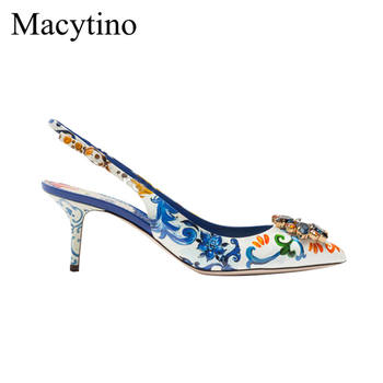 Women embroidery flower high heels Pumps runway design bridal crystal slingback sandals