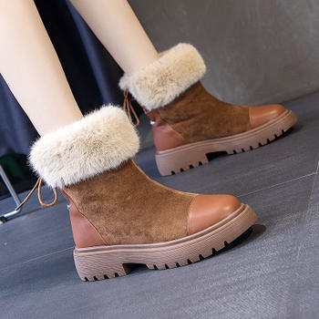 Snow boots women’s short boots, fashionable winter boots, winter plus velvet thick bottom small fragrance women’s shoes