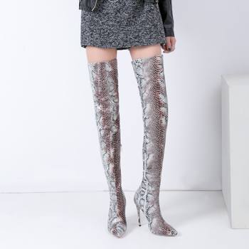 Sestito Snakeskin Print Pointed Toe Over-the-knee Boots Ladies Side Zipper Thigh High Heels
