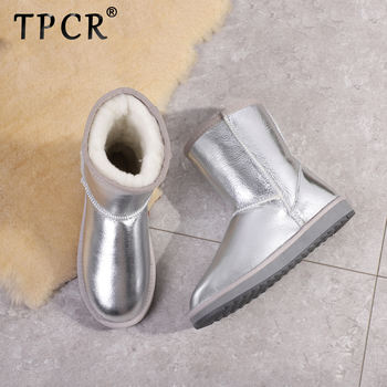 TPCR 2020 Fashion New Sheepskin Leather Natural Sheep Fur Lined White Snow Boots for Women Winter Boots Waterproof Warm Shoes