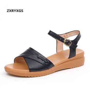 Soft Comfortable Genuine Leather Sandals Flat Non-slip Casual Sandals Plus Size Mother Pregnant Women Shoes Summer Sandals