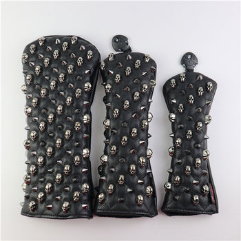 Golf Headcovers Skull Rivets PU Leather Golf Head Covers For Driver Fairway #3 #5 Hybrids Rescue Woods Clubs Golf Wood Cover