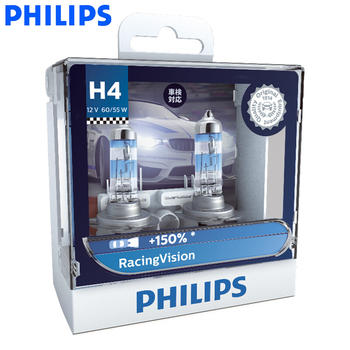 Philips H4 H7 9003 Racing Vision +150% More Brightness Auto Headlight Hi/lo Beam Halogen Lamp Rally Performance ECE, Pair