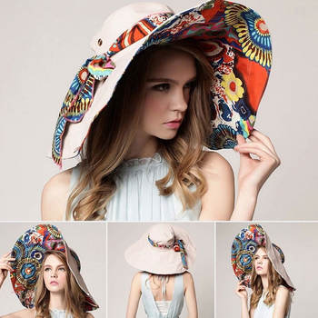 Fashion Women Flower Folding Brimmed Hat Sun UV Protection Outdoor Summer Beach Bowknot Hats