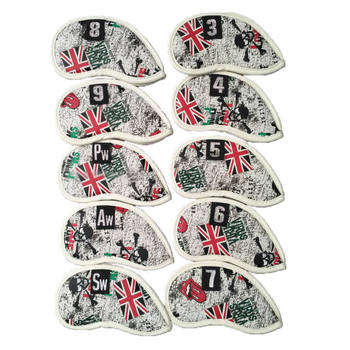 10pcs 3/4/5/6/7/8/9/PW/AW/SW Printed Soft PU Golf Iron Club Head Ball Putter Protection Cover Golf Training Aids Gift for Golfer