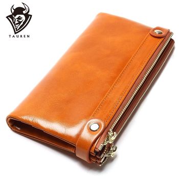 Women Wallets Genuine Leather Medium-Long Organizer Wallet Oil Wax Cowhide Hasp Vintage Lady Clutch Carteira Feminina Purse