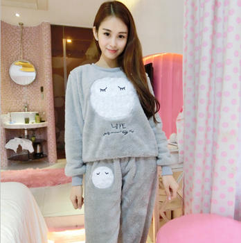 Winter Velvet Pajama Women Round Neck Pyjamas Femme Flannel Pijama Set Warm 2 Pcs Pj Set Homewear Women Thick Nightwear