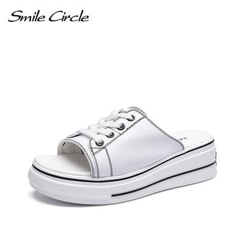 Smile Circle Summer flip flop Women Flat platform slippers outdoor Genuine Leather Ladies Wedge shoes