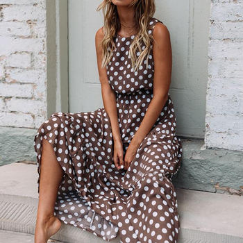 Women Dresses Maxi Polka Dot Boho Beach Party Chiffon Summer Dress Elastic Waist Dot Casual Elegant Long Dress Vestidos