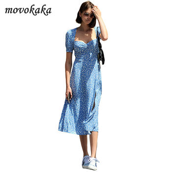 MOVOKAKA Polka Dot Maxi Dress Women Summer Long Dress Plus Size Casual Dresses For Women 2020 Vintage Elegant Womens Party Dress