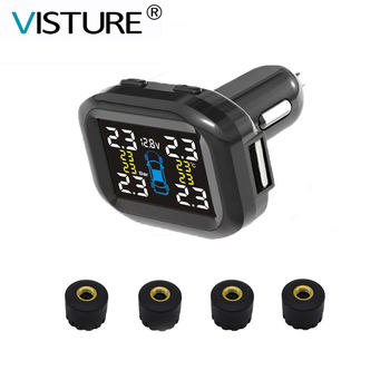 Visture TPMS With 10W USB Output Car Tire Pressure Alarm Monitor System Tyre Monitoring External Internal Sensor T05W T07W