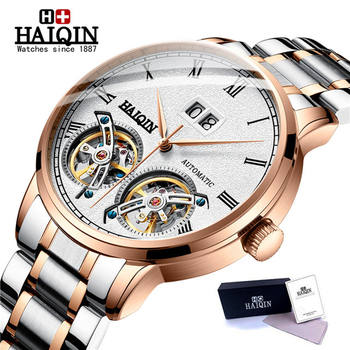 HAIQIN Men Mechanical Automatic Double Tourbillon Calendar Stainless Steel Wrist Watches Top Brand Luxury Military Male Clock