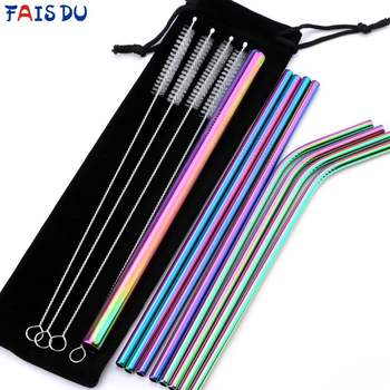 14 pcs Metal Reusable 304 Stainless Steel Straws Straight Bent Drinking Straw With Case Cleaning Brush Set Party Bar accessory