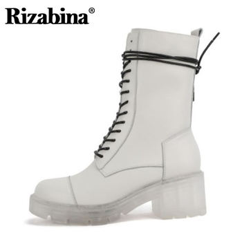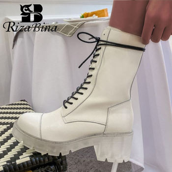 Rizabina Women Boot Genuine Leather Fashion Cross Strap Platform Winter Shoes Woman Office Lady Long Boot Footwear Size 34-39