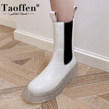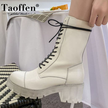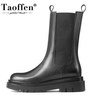 TAOFFEN Woman Mid Calf Boots Mixed Color Real Leather Woman Short Boots Fashion Cool Shoes Winter Woman Footwear Size 33-40
