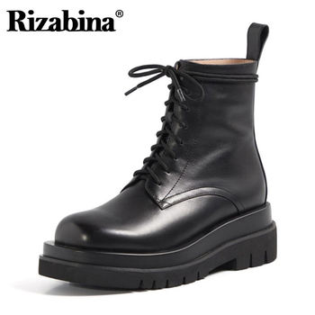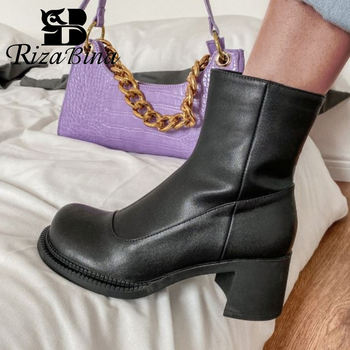 RIZABINA Genuine Leather Women Short Boots Fashion Zipper Thick Heel Shoes Woman Winter Office Lady Party Footwear Size 34-39