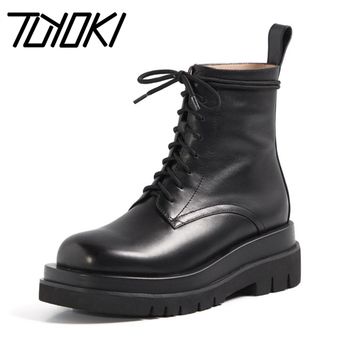 Tuyoki Women Boot Genuine Leather Fashion Cross Strap Platform Winter Shoes Woman Office Lady Long Boot Footwear Size 34-39