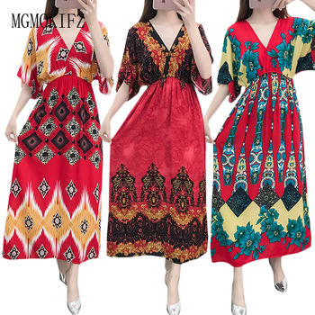 Women Summer Dress 2020 Korean Casual Short Sleeve Long Dress Boho Floral Print Maxi Dress V Neck Floral Elegant Dresses Vestido