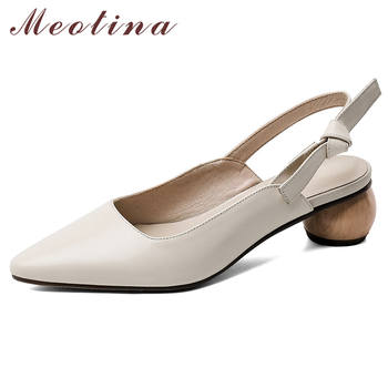 Meotina High Heels Women Slingbacks Shoes Natural Genuine Leather Strange Style Heels Shoes Cow Leather Pointed Toe Pumps Ladies