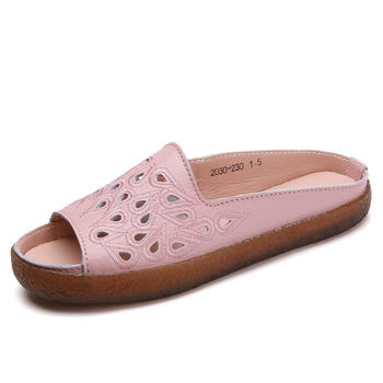 2020 Leather Summer Fashion Flat Shoes Women Slippers Wild Women’s Shoes Leisure Home Slippers Women Casual Shoes Slip On Lazy