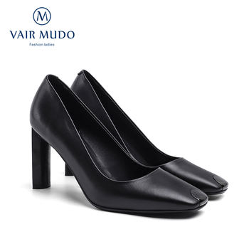 VAIR MUDO Women Pumps Shoes High Heel Elegant Black White Genuine leather Square Toe Shallow Shoes Women Pumps Spring Shoe D148L