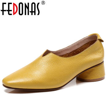 FEDONAS 2020 Spring Summer Quality Genuine Leather Women Pumps Shallow Slip On High Heels Party Wedding Office Shoes Woman