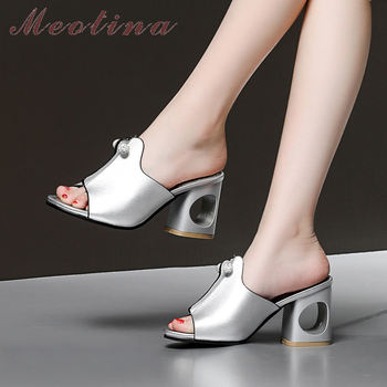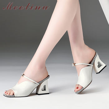 Meotina Summer Slippers Women Shoes Natural Genuine Leather Thick High Heels Shoes Real Leather Open Toe Slides Lady Sandals 39