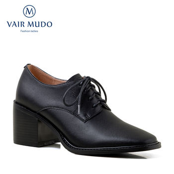 VAIR MUDO Cow Leather Women Pumps Shoes Ladies Black Lace-up 2020 Fashion Thick Heel Genuine Leather Spring Autumn Shoes D51L