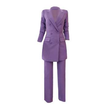 2 piece Purple Pant Suits Formal Ladies Office OL Uniform Designs Women elegant Business Work Wear Jacket with Trousers Sets