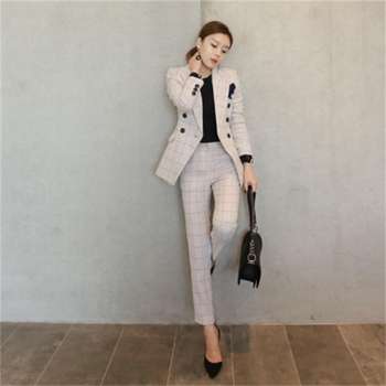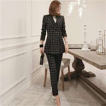 Suit Autumn winter size S-2XL ladies plaid two piece set female office work suits blazer+ pants
