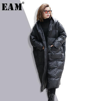 [EAM] 2020 New Winter Hooded Long Sleeve Solid Color Black Cotton-padded Warm Loose Big Size Jacket Women parkas Fashion JD12101