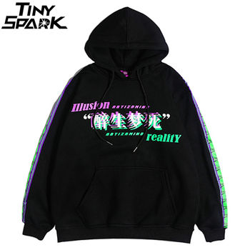 Men Hip Hop Hoodie Sweatshirt Drunk Illusion Chinese Character Hoodie Streetwear Casual Black Hooded Pullover Cotton Autumn 2020