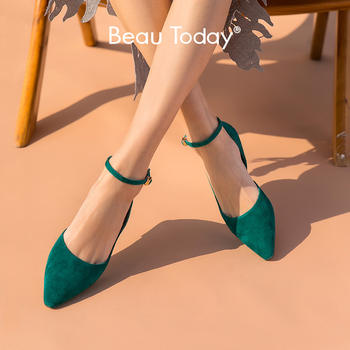 BeauToday Mary Janes Women Kid Suede Leather Flats Elegant Pointed Toe Ankle Strap Cover Heel Ladies Summer Party Shoes A30063