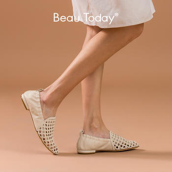 BeauToday Loafers Women Sheepskin Genuine Leather Hollow Square Toe Slip-On Spring Summer Lady Casual Flat Shoes Handmade 30069