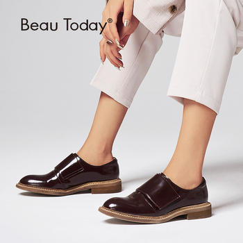 BeauToday Women Monk Shoes Genuine Cow Leather Round Toe Hook and Loop Design High Quality Ladies Shoes Handmade 24034