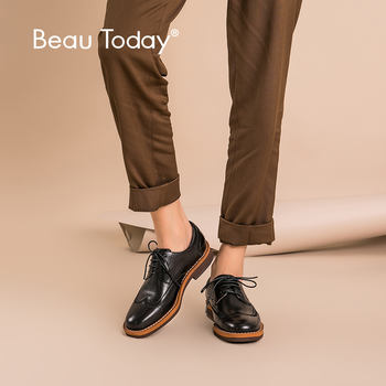 BeauToday Casual Shoes Women Calfskin Genuine Leather Wingtip Lace-up Round Toe Fashion Design Ladies Shoes Handmade 21417