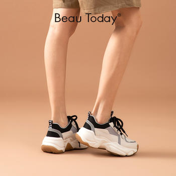 BeauToday Chunky Sneakers Women Genuine Cow Leather Nylon Mesh Retro Design Lace-Up Closure lady Platform Shoes Handmade 2933310