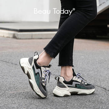BeauToday Chunky Sneakers Women Genuine Cow Leather Platform Shoes Lace-Up Mixed Colors Lady Casual Shoes Handmade 29356