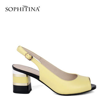SOPHITINA Comfortable Sandals Fashion Ankle-Wrap High Quality Sheepskin Shoes Square Heels Peep Toe Design Woman Sandals MC170