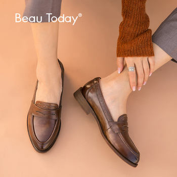 BeauToday Classic Penny Loafers Women Genuine Cow Leather British Style Pointed Toe Slip On Female Flat Shoes Handmade 27112