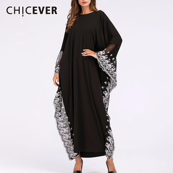 CHICEVER Fashion Adult Lace Embroidered Robe Maxi Dress For Women Batwing Sleeve Chic Gown Kaftan Ramadan EID Abaya Plus Size