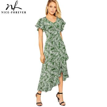 Nice-forever Boho Summer Printed Maxi Beach vestidos unsymmetrical Hem A-Line Flare Women Dress A156
