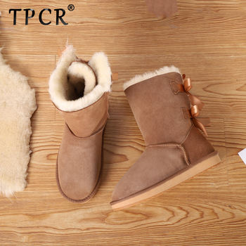 TPCR classic Sheepskin Leather Fashion Girls Lace-up Mid-calf Short Winter Boots for Women Sheep Fur Lined Snow Boots Warm Shoes
