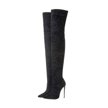 ARQA Warm Stretch Suede Leather High Heels boots Winter Stiletto Heels