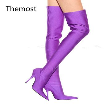 ARQA Winter Summer Thigh High Boots Satin Stretch Elastic Over The Knee